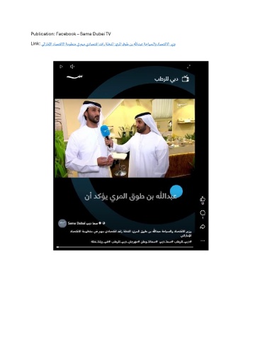 Publication: Facebook – Sama Dubai TV Link: يتاراملإا داصتقلاا ةموظنم يف مهم يداصتقا دفار ةلخنلا :يرلما قوط نب اللهدبع ةحايسلاو داصتقلاا ريزو