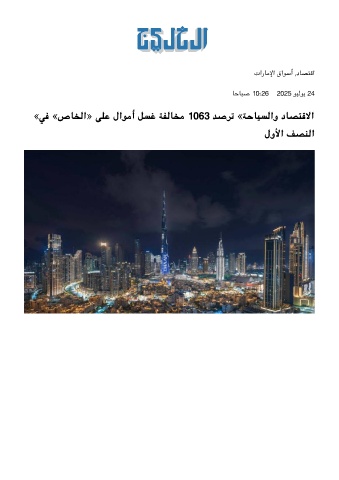 تارﺎﻣﻹا قاﻮﺳأ ,دﺎﺼﺘﻗا ﺎﺣﺎﺒﺻ 10:26 2025 ﻮﻴﻟﻮﻳ 24 «ﻓ «صﺎﺨﻟا» ﻠﻋ لاﻮﻣأ ﻞﺴﻏ ﺔﻔﻟﺎﺨﻣ 1063 ﺪﺻﺮﺗ «ﺔﺣﺎﻴﺴﻟاو دﺎﺼﺘﻗﻻا لوﻷا ﻒﺼﻨﻟا