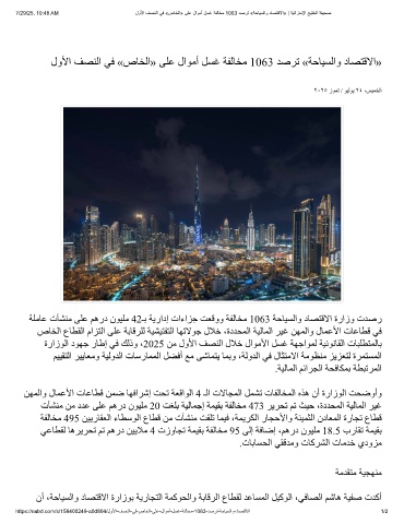7/29/25, 10:48 AM لوﻷا فﺻﻧﻟا ﻲﻓ «صﺎﺧﻟا» ﻰﻠﻋ لاوﻣأ لﺳﻏ ﺔﻔﻟﺎﺧﻣ 1063 دﺻرﺗ «ﺔﺣﺎﯾﺳﻟاو دﺎﺻﺗﻗﻻا» | ﺔﯾﺗارﺎﻣﻹا ﺞﯾﻠﺧﻟا ﺔﻔﯾﺣﺻ