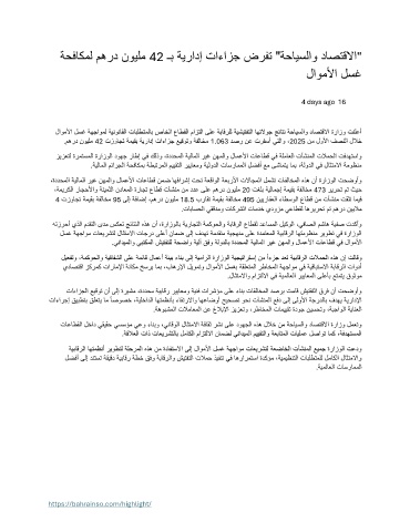. مهرد نويلم 42 تزواجت ةميقب ةيرادإ تاءازج عيقوتو ةفلاخم 1.063 دصر نع ترفسأ يتلاو ، 2025 نم لولأا فصنلا للاخ
