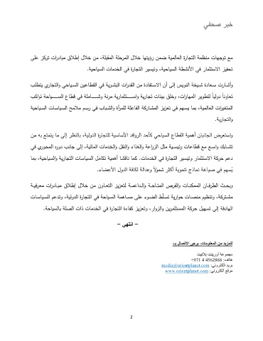 .ةحايسلاب ةلصلا تاذ تامدخلا ف ةراجتلا ةءافك زيزعتو ،راوزلاو نيرمثتسملا ةكرح ايهست ىلإ ةفداهلا