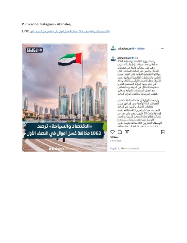Publication: Instagram - Al Khaleej Link: لولأا فصنلا يف »صاخلا« ىلع لاومأ لسغ ةفلاخم 1063 دصرت »ةحايسلاو داصتقلاا«