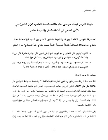 يف نواعتلا زيزعت ةيملاعلا ةحصلا ةمظنم ماع ريدم عم ثحبت سيونلا ةخيش