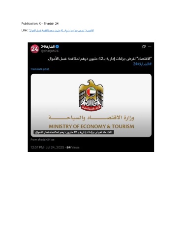 Publication: X – Sharjah 24 Link: "لاوملأا لسغ ةحفاكلم مهرد نويلم 42 ـب ةيرادإ تاءازج ضرفت "داصتقلاا