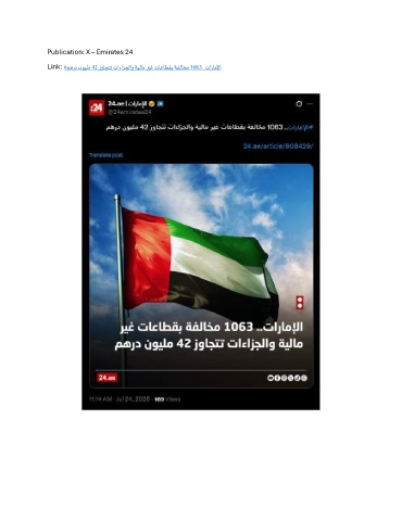 Publication: X – Emirates 24 Link: # مهرد نويلم 42 زواجتت تاءازجلاو ةيلام ريغ تاعاطقب ةفلاخم 1063 ..تاراملإا