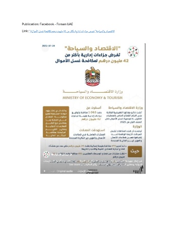 Publication: Facebook - Forsan UAE Link: "#لاوملأا لسغ ةحفاكلم مهرد نويلم 42 نم رثكأب ةيرادإ تاءازج ضرفت "ةحايسلاو_داصتقلاا