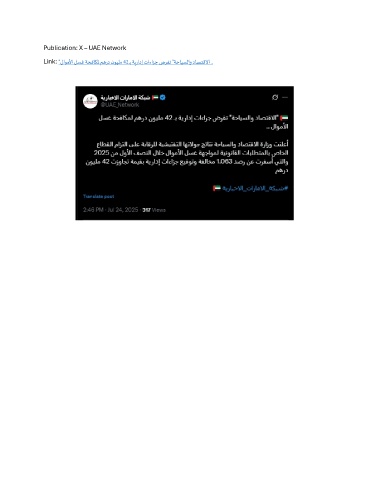 Publication: X – UAE Network Link: "لاوملأا لسغ ةحفاكلم مهرد نويلم 42 ـب ةيرادإ تاءازج ضرفت "ةحايسلاو داصتقلاا ..