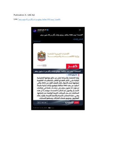 Publication: X – UAE Ajil Link: "مهرد نويلم 42 نم رثكأب تاءازج عقوتو ..ةفلاخم 1063 دصرت "داصتقلاا.