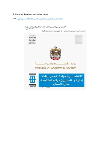 Publication: Facebook – Al Barjeel News Link: "لاوملأا لسغ ةحفاكلم مهرد نويلم 42 ـب ةيرادإ تاءازج ضرفت "ةحايسلاو داصتقلاا