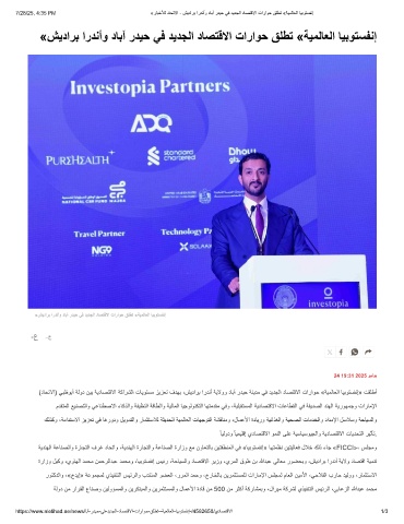 (دﺎﺣﺗﻻا) ﻲﺑظوﺑأ ﺔﻟود نﯾﺑ ﺔﯾدﺎﺻﺗﻗﻻا ﺔﻛارﺷﻟا تﺎﯾوﺗﺳﻣ زﯾزﻌﺗ فدﮭﺑ ،شﯾدارﺑ اردﻧأ ﺔﯾﻻوو دﺎﺑآ ردﯾﺣ ﺔﻧﯾدﻣ ﻲﻓ دﯾدﺟﻟا دﺎﺻﺗﻗﻻا تاراوﺣ «ﺔﯾﻣﻟﺎﻌﻟا ﺎﯾﺑوﺗﺳﻔﻧإ» تﻘﻠطأ