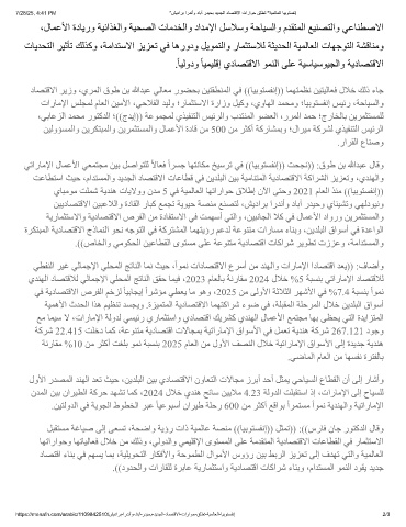 ﻊﻣ ﺎﻤﯿﺳ ﻻ ،تارﺎﻣﻹا ﺔﻟوﺪﻟ ﻲﺴﯿﺋر يرﺎﻤﺜﺘﺳاو يدﺎﺼﺘﻗا ﻚﯾﺮﺸﻛ يﺪﻨﮭﻟا لﺎﻤﻋﻷا ﻊﻤﺘﺠﻣ ﺎﮭﺑ ﻰﻈﺤﯾ ﻲﺘﻟا ةﺪﯾاﺰﺘﻤﻟا