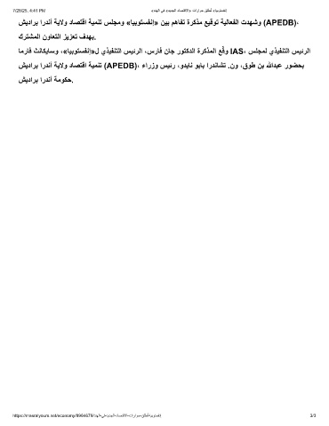 شﯾدارﺑ اردﻧأ ﺔﯾﻻو دﺎﺻﺗﻗا ﺔﯾﻣﻧﺗ سﻠﺟﻣو «ﺎﯾﺑوﺗﺳﻔﻧإ» نﯾﺑ مھﺎﻔﺗ ةرﻛذﻣ ﻊﯾﻗوﺗ ﺔﯾﻟﺎﻌﻔﻟا تدﮭﺷو (APEDB)،