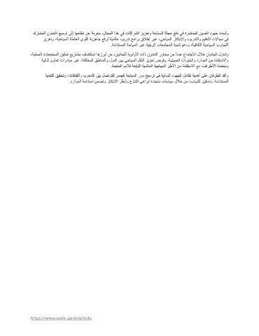 ةيئانث نواعت تاردابم ربع ،ةفلتخملا قطانملاو لودلا نيب يحايسلا لقنلا زيزعت صرفو ،ةينيصلا تاربخلاو دراوملا نم ةدافتسلااو