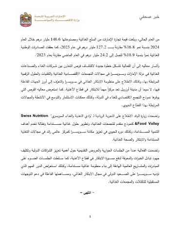 Swiss Nutrition " رس وسلا ءاذغلاو ذغتلا داو " اال د رلا رجتلا ىلع علاطلاا دفولا ار ز مضتو