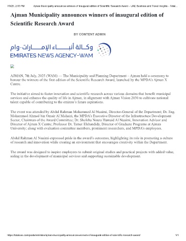7/9/25, 2:03 PM Ajman Municipality announces winners of inaugural edition of Scientific Research Award – UAE Business and Travel Insights – Total…