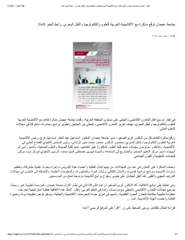 ،ﺔﯿﺤﺑر ﺮﯿﻏ ﺔﯿﻤﯿﻠﻌﺗ ﺔﺴﺳﺆﻤﻛ ،نﺎﻤﺠﻋ ﺔﻌﻣﺎﺟ ماﺰﺘﻟا رﺎطإ ﻲﻓ ﻲﺗﺄﺗ ﺔﻛاﺮﺸﻟا هﺬھ نأ ﺮﯿﻐﺼﻟا ﻢﯾﺮﻛ رﻮﺘﻛﺪﻟا ﺪﻛأ ،ﺔﯿﻗﺎﻔﺗﻻا ﻊﯿﻗﻮﺗ ﻰﻠﻋ ﮫﻘﯿﻠﻌﺗ ﻲﻓو