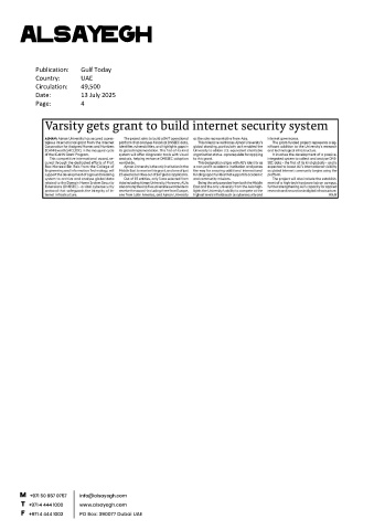 Publication: Gulf Today Country: UAE Circulation: 49,500 Date: 13 July 2025 Page: 4