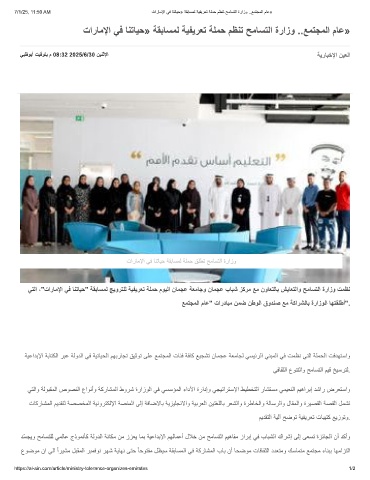 7/1/25, 11:50 AM تارﺎﻣﻹا ﻲﻓ ﺎﻧﺗﺎﯾﺣ» ﺔﻘﺑﺎﺳﻣﻟ ﺔﯾﻔﯾرﻌﺗ ﺔﻠﻣﺣ مظﻧﺗ ﺢﻣﺎﺳﺗﻟا ةرازو ..ﻊﻣﺗﺟﻣﻟا مﺎﻋ»
