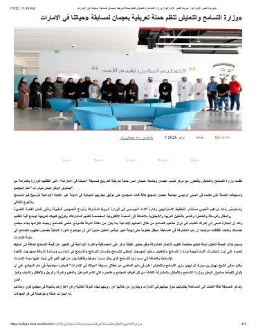 7/1/25, 11:49 AM تارﺎﻣﻹا ﻲﻓ ﺎﻧﺗﺎﯾﺣ» ﺔﻘﺑﺎﺳﻣﻟ نﺎﻣﺟﻌﺑ ﺔﯾﻔﯾرﻌﺗ ﺔﻠﻣﺣ مظﻧﺗ شﯾﺎﻌﺗﻟاو ﺢﻣﺎﺳﺗﻟا ةرازو | ﮫﯾﺗارﺎﻣﻹا رﺟﻔﻟا ةدﯾرﺟ | ﮫﯾﺗارﺎﻣﻹا رﺟﻔﻟا ةدﯾرﺟ»