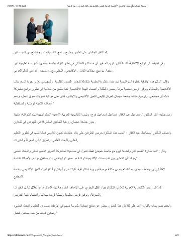 رﯾﻏ ﺔﯾﻣﯾﻠﻌﺗ ﺔﺳﺳؤﻣﻛ ،نﺎﻣﺟﻋ ﺔﻌﻣﺎﺟ مازﺗﻟا رﺎطإ ﻲﻓ ﻲﺗﺄﺗ ﺔﻛارﺷﻟا هذھ نأ رﯾﻐﺻﻟا مﯾرﻛ روﺗﻛدﻟا دﻛأ ،ﺔﯾﻗﺎﻔﺗﻻا ﻊﯾﻗوﺗ ﻰﻠﻋ ﮫﻘﯾﻠﻌﺗ ﻲﻓو