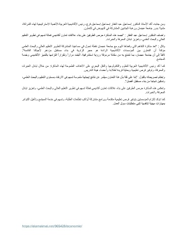 ميلعتلا ريوطت يف مهست ةلاعف يميداكأ نواعت تاقلاع ءانب ىلع نيفرطلا صرح ةركذملا هذه دسجت“ : رافغلا دبع ليعامسإ روتكدلا فاضاو