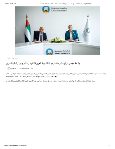 7/2/25, 10:20 AM يرﺣﺑﻟا لﻘﻧﻟاو ﺎﯾﺟوﻟوﻧﻛﺗﻟاو موﻠﻌﻠﻟ ﺔﯾﺑرﻌﻟا ﺔﯾﻣﯾدﺎﻛﻷا ﻊﻣ مھﺎﻔﺗ ةرﻛذﻣ ﻊ ّ ﻗوﺗ نﺎﻣﺟﻋ ﺔﻌﻣﺎﺟ - bayiannews