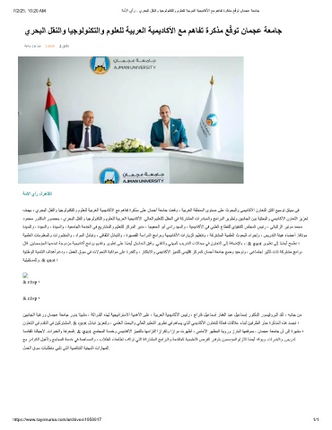 7/2/25, 10:20 AM ﺔﻣﻷا يأر - يرﺣﺑﻟا لﻘﻧﻟاو ﺎﯾﺟوﻟوﻧﻛﺗﻟاو موﻠﻌﻠﻟ ﺔﯾﺑرﻌﻟا ﺔﯾﻣﯾدﺎﻛﻷا ﻊﻣ مھﺎﻔﺗ ةرﻛذﻣ ﻊ ّ ﻗوﺗ نﺎﻣﺟﻋ ﺔﻌﻣﺎﺟ