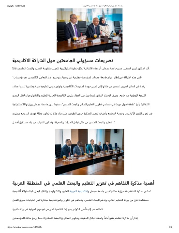 ﺔﻴﻤﻳدﺎﻛأ ﺔﻛارش ءﺎﻨﺒﻟ يﺮﺤﺒﻟا ﻞﻘﻨﻟاو ﺎﻴﺟﻮﻟﻮﻨﻜﺘﻟاو مﻮﻠﻌﻠﻟ ﺔﻴﺑﺮﻌﻟا ﺔﻴﻤﻳدﺎﻛالاو نﺎﻤﺠﻋ ﺔﻌﻣﺎﺟ ﻦﻴﺑ ﺔﻛﺮﺘﺸﻣ ﺔﻳؤر هﺬﻫ ﻢﻫﺎﻔﺘﻟا ةﺮﻛﺬﻣ ﺲﻜﻌﺗ