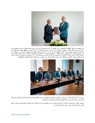 ريغ ةيميلعت ةسسؤمك ،نامجع ةعماج مازتلا راطإ يف يتأت ةكارشلا هذه نأ ريغصلا ميرك روتكدلا دكأ ،ةيقافتلاا عيقوت ىلع هقيلعت يفو