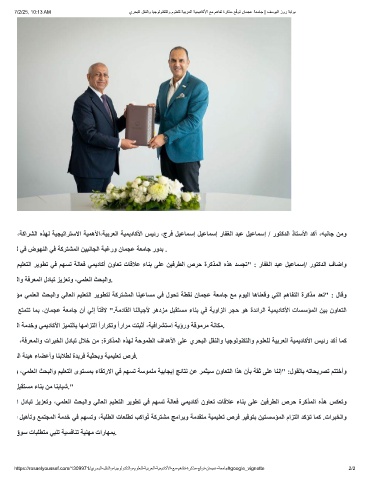 7/2/25, 10:13 AM يرﺣﺑﻟا لﻘﻧﻟاو ﺎﯾﺟوﻟوﻧﻛﺗﻟاو موﻠﻌﻠﻟ ﺔﯾﺑرﻌﻟا ﺔﯾﻣﯾدﺎﻛﻷا ﻊﻣ مھﺎﻔﺗ ةرﻛذﻣ ﻊ ّ ﻗوﺗ نﺎﻣﺟﻋ ﺔﻌﻣﺎﺟ | فﺳوﯾﻟا زور ﺔﺑاوﺑ