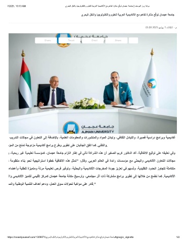 7/2/25, 10:13 AM يرﺣﺑﻟا لﻘﻧﻟاو ﺎﯾﺟوﻟوﻧﻛﺗﻟاو موﻠﻌﻠﻟ ﺔﯾﺑرﻌﻟا ﺔﯾﻣﯾدﺎﻛﻷا ﻊﻣ مھﺎﻔﺗ ةرﻛذﻣ ﻊ ّ ﻗوﺗ نﺎﻣﺟﻋ ﺔﻌﻣﺎﺟ | فﺳوﯾﻟا زور ﺔﺑاوﺑ