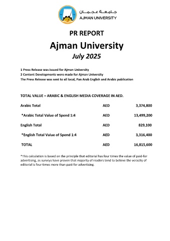 Page 3 - AJMAN UNIVERSITY PR REPORT - JULY 2025