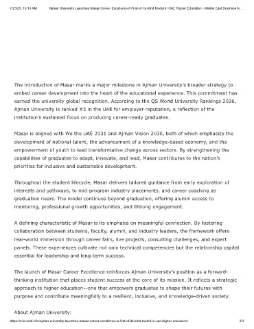 https://mid-east.info/ajman-university-launches-masar-career-excellence-a-first-of-its-kind-model-in-uae-higher-education/ 2/3