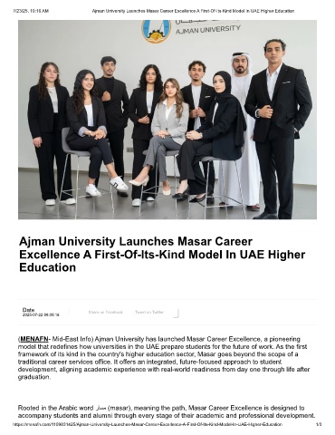 https://menafn.com/1109831425/Ajman-University-Launches-Masar-Career-Excellence-A-First-Of-Its-Kind-Model-In-UAE-Higher-Education 1/3