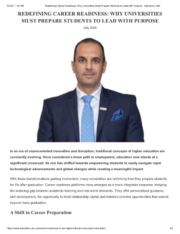 8/1/25, 1:36 PM Redefining Career Readiness: Why Universities Must Prepare Students to Lead with Purpose - Education UAE