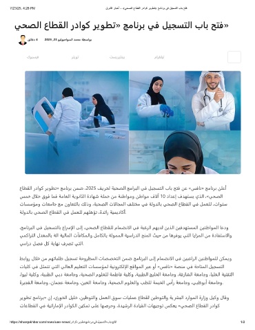 7/23/25, 4:28 PM قرﺷﻟا رﺎﺑﺧأ – «ﻲﺣﺻﻟا عﺎطﻘﻟا رداوﻛ رﯾوطﺗ» ﺞﻣﺎﻧرﺑ ﻲﻓ لﯾﺟﺳﺗﻟا بﺎﺑ ﺢﺗﻓ