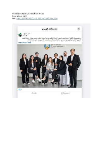 Publication: Facebook- UAE News Arabic Date: 23 July 2025 Link: لمعلا قوسل ةبلطلا ليهأتل "ينهملا زّيمتلل راسم" قلطُت نامجع ةعماج