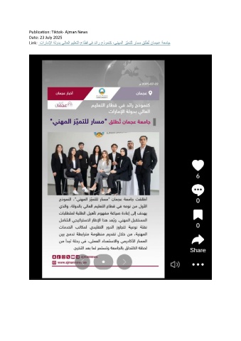 Publication: Tiktok- Ajman News Date: 23 July 2025 Link: تاراملإا ةلودب يلاعلا ميلعتلا عاطق يف دئار جذومنك ،ينهملا زّيمتلل راسم قلطُت نامجع ةعماج