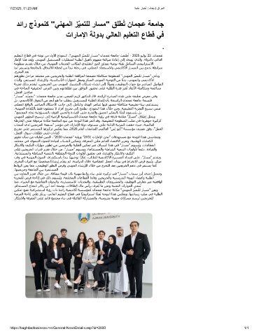 ﻢﯿﻠﻌﺘﻟا عﺎﻄﻗ ﻲﻓ ﻪﻋﻮﻧ ﻦﻣ لوﻷا جذﻮﻤﻨﻟا ،"ﻲﻨﮫﻤﻟا ﺰّﯿﻤﺘﻠﻟ رﺎﺴﻣ" نﺎﻤﺠﻋ ﺔﻌﻣﺎﺟ ﺖﻘﻠطأ - 2025 ﻮﯿﻟﻮﻳ 22 ،نﺎﻤﺠﻋ