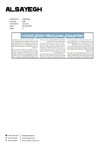 Publication: Al Khaleej Country: UAE Circulation: 121,141 Date: 01 July 2025 Page: 6