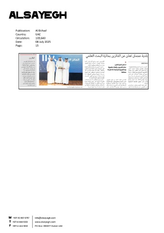 Publication: Al Etihad Country: UAE Circulation: 109,640 Date: 08 July 2025 Page: 15