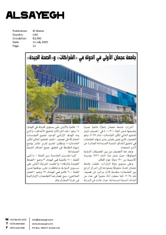 Publication: Al Watan Country: UAE Circulation: 83,000 Date: 11 July 2025 Page: 12