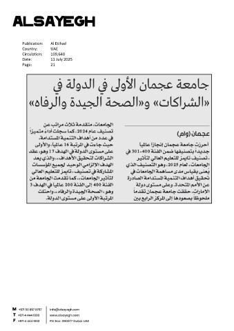 Publication: Al Etihad Country: UAE Circulation: 109,640 Date: 11 July 2025 Page: 21