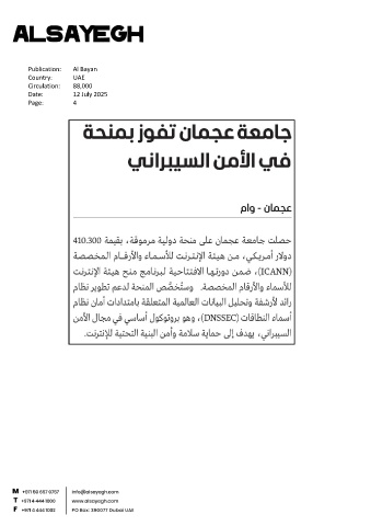 Publication: Al Bayan Country: UAE Circulation: 88,000 Date: 12 July 2025 Page: 4