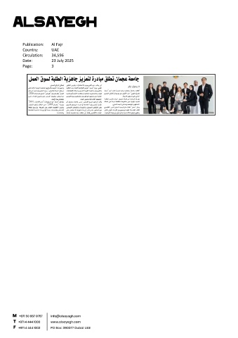 Publication: Al Fajr Country: UAE Circulation: 34,596 Date: 23 July 2025 Page: 3