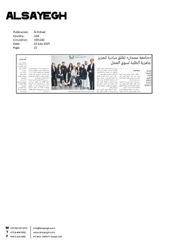 Publication: Al Etihad Country: UAE Circulation: 109,640 Date: 23 July 2025 Page: 15