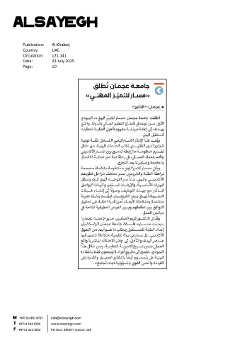 Publication: Al Khaleej Country: UAE Circulation: 121,141 Date: 23 July 2025 Page: 10