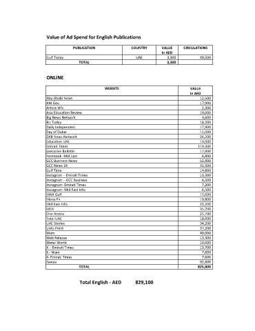 Value of Ad Spend for English Publications