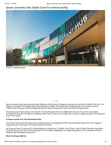 7/14/25, 11:34 AM Ajman University Gets Global Grant for Internet Safety