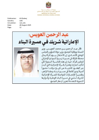 Publication: Al Khaleej Country: UAE Circulation: 121,141 Date: 28 August 2025 Page: 12